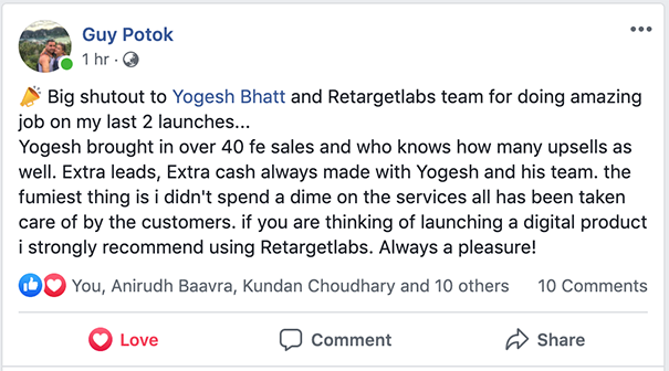 Unbelievably, Yogesh brought back my 50 lost customers in just $80+ or so of retargeting ads budget.